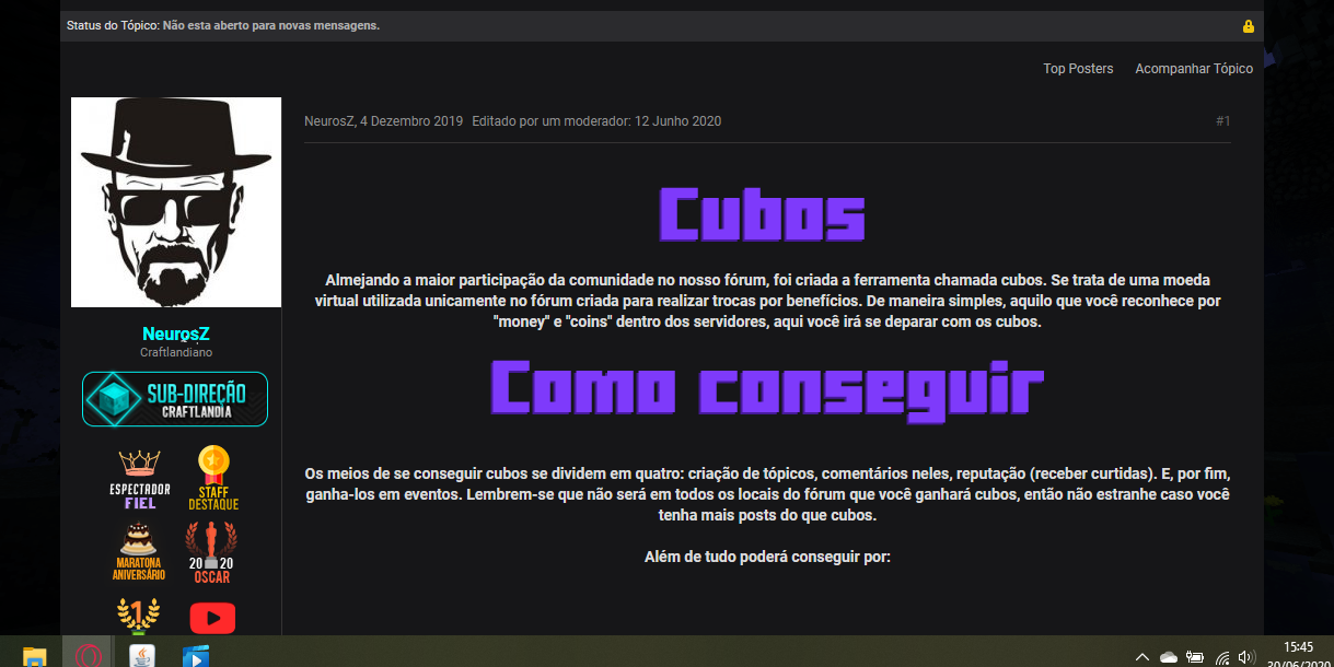O primeiro a acertar qual é o tópico ganhará 60 Cubinhos